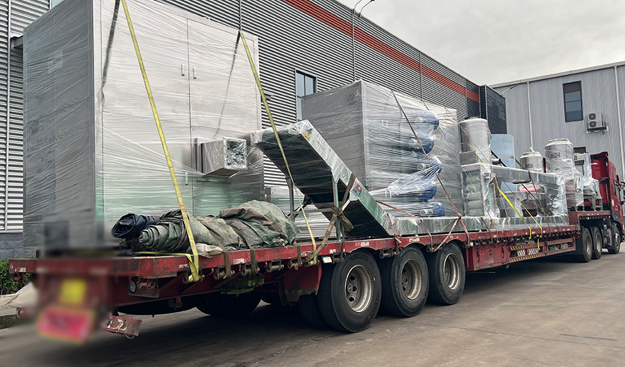 • R60原味炒機(jī)跟配套線設(shè)備吊車輔助裝車發(fā)貨